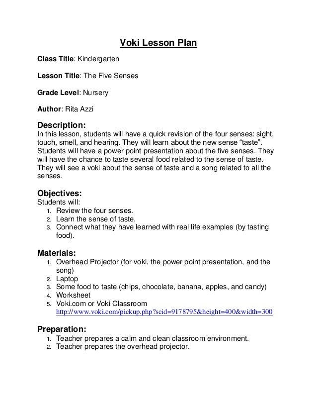 lesson plan senses five kindergarten grade voki nursery class slideshare explore title level